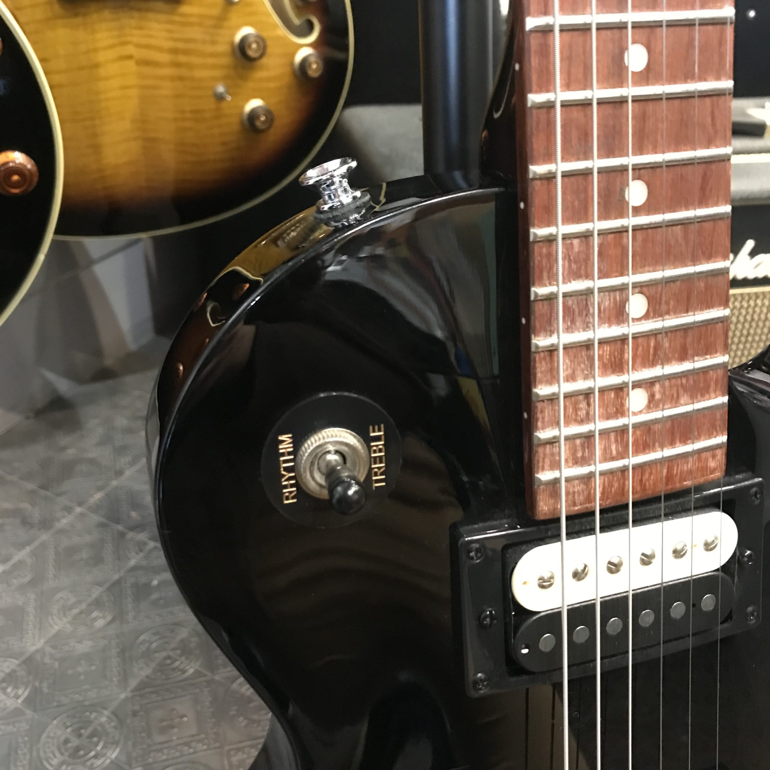 Einsteigerfreundliche gebrauchte Epiphone Les Paul Studio LT (2020) in Schwarz – ideal zum Lernen & Ausprobieren – jetzt im Musikhaus Bozen!