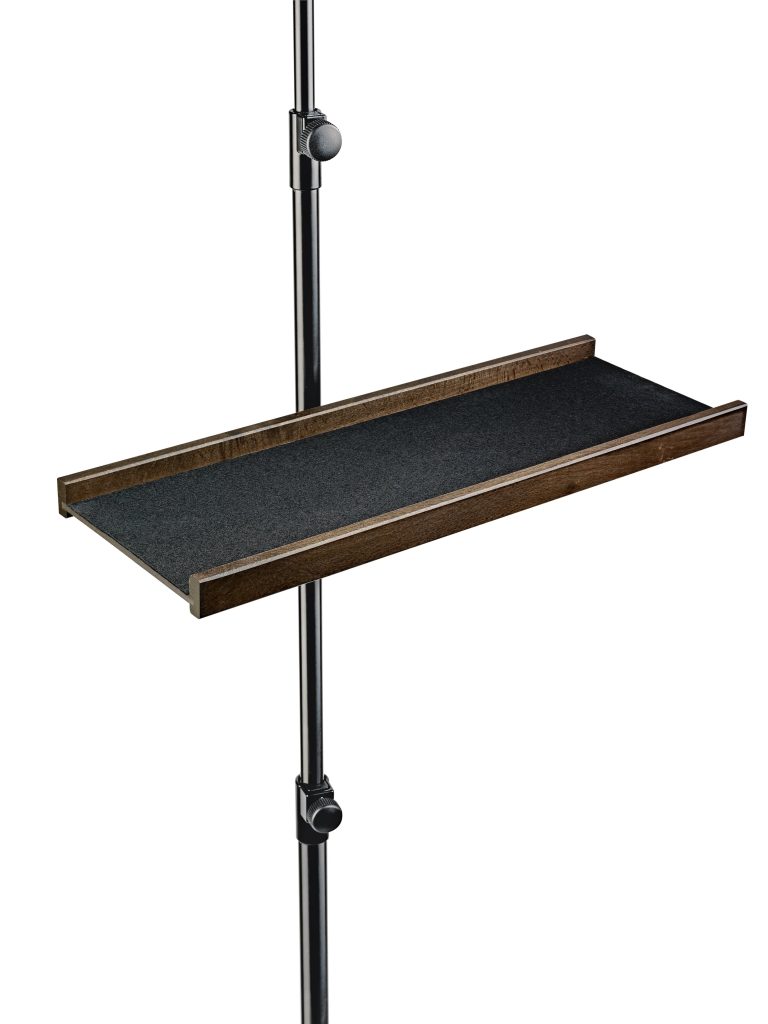 Praktische Noten- und Instrumentenablage aus Holz, innnenseitig mit Filz beklebt. Anklemmbar an alle K&M Stative bis Rohr-ø 30 mm.
