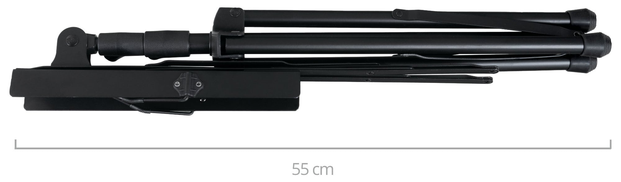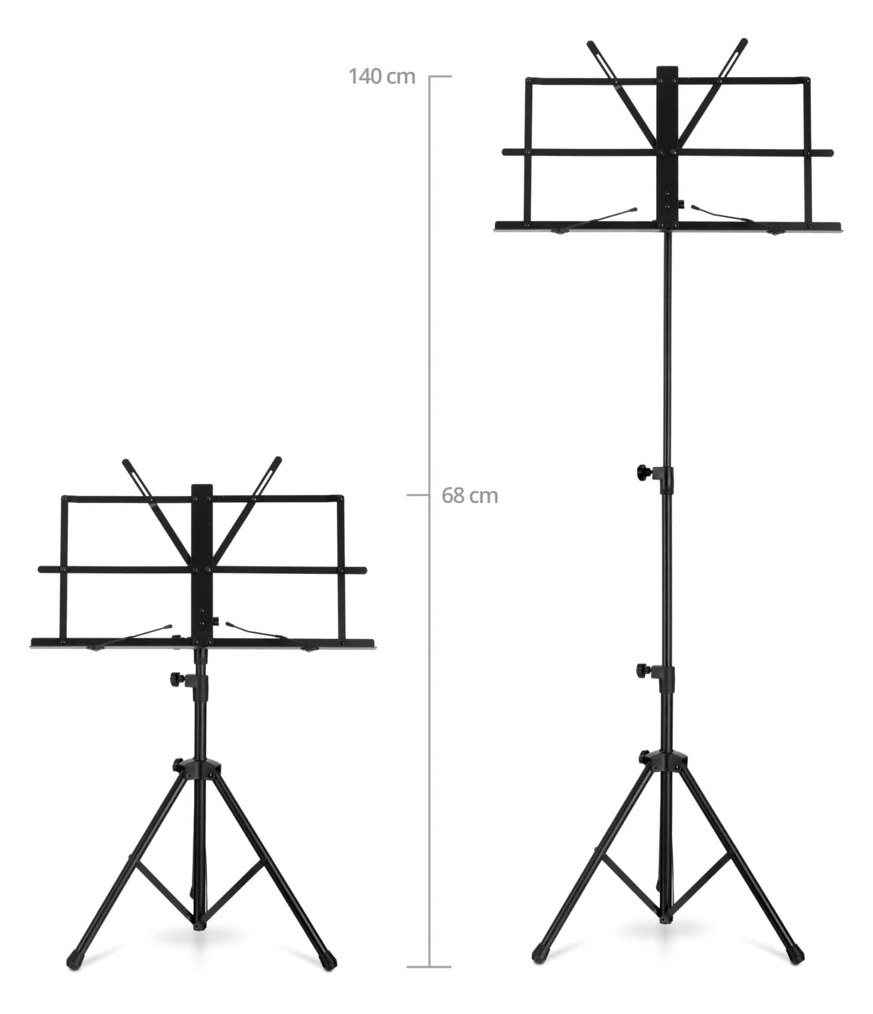 Obwohl das Notenpult aus stabilem Stahl gefertigt ist, bringt es lediglich 1,2 kg auf die Waage. Wird der Notenständer dann noch in der beiliegenden Tasche verstaut, kann er kinderleicht zur Probe, zum Unterricht und zum Auftritt transportiert werden.