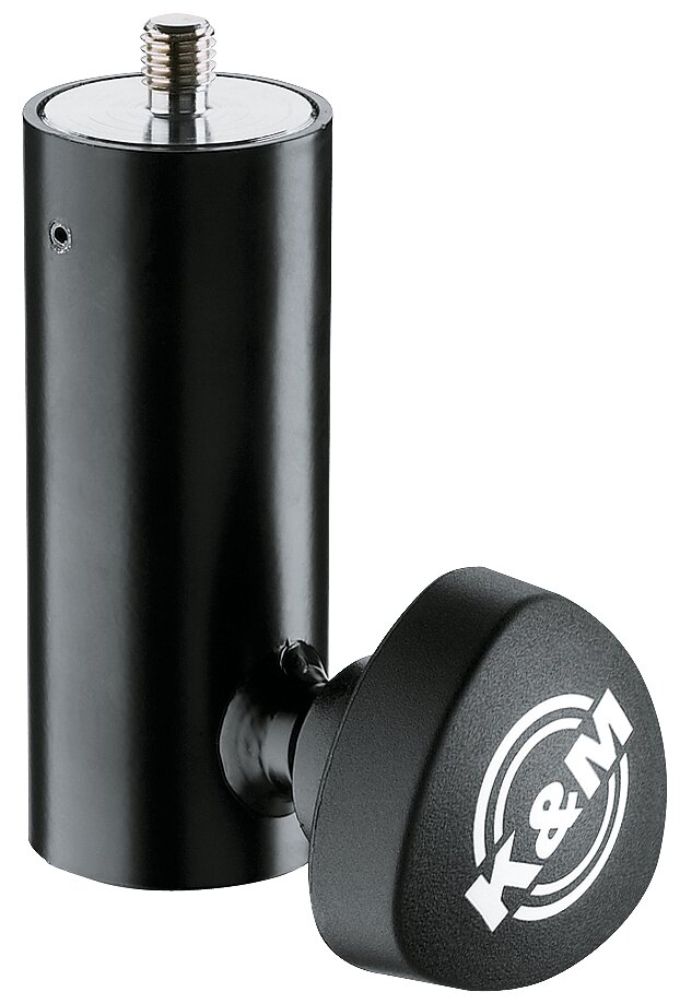 Passend für alle K&M-Boxenstative-ø 35 mm. Mit Gewindezapfen 3/8″ x 12 mm und großer Klemmschraube zum Arretieren am Stativ.
