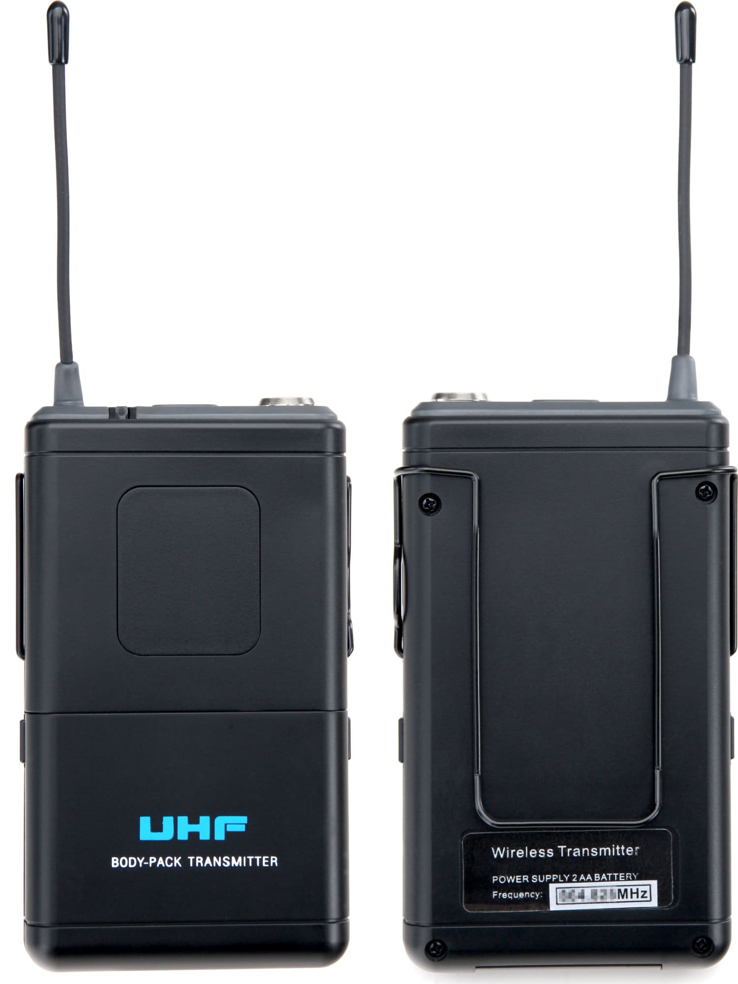 Passend zu den Lavaliermikrofonen wird jeweils ein Bodypack-Taschensender mitgeliefert, welcher sich mit seiner praktischen Klammer auf der Rückseite einfach an einem Gürtel oder an Bekleidungsstücken befestigen lässt. Um die Taschensender auch als Instrumentenfunk verwenden zu können, lassen sich diese mit den mitgelieferten Mini-XLR-auf-Klinke-Kabeln schnell und einfach umrüsten.
