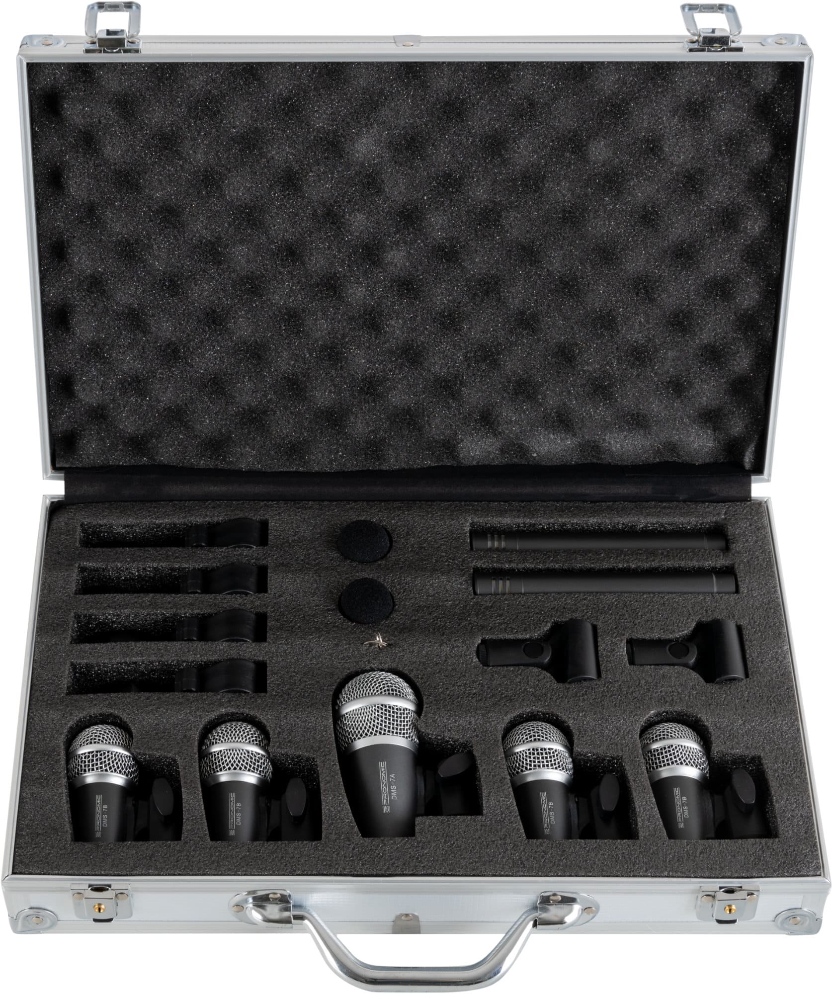 Das DMS-7 bietet druckvollen Sound mit hoher Dynamik und brillantem Attack. Das Set ist die ideale Wahl zur Abnahme Deines Schlagzeuges, gleichermaßen live oder im Studio. Im Lieferumfang enthalten sind 1 Bass Drum-Mikrofon, 4 Tom/Snare Drum-Mikrofone mit Rim-Klemmen sowie 2 Elektret-Overhead-Mikrofone. Dadurch ist eine optimale Abnahme des Drumsets gewährleistet.