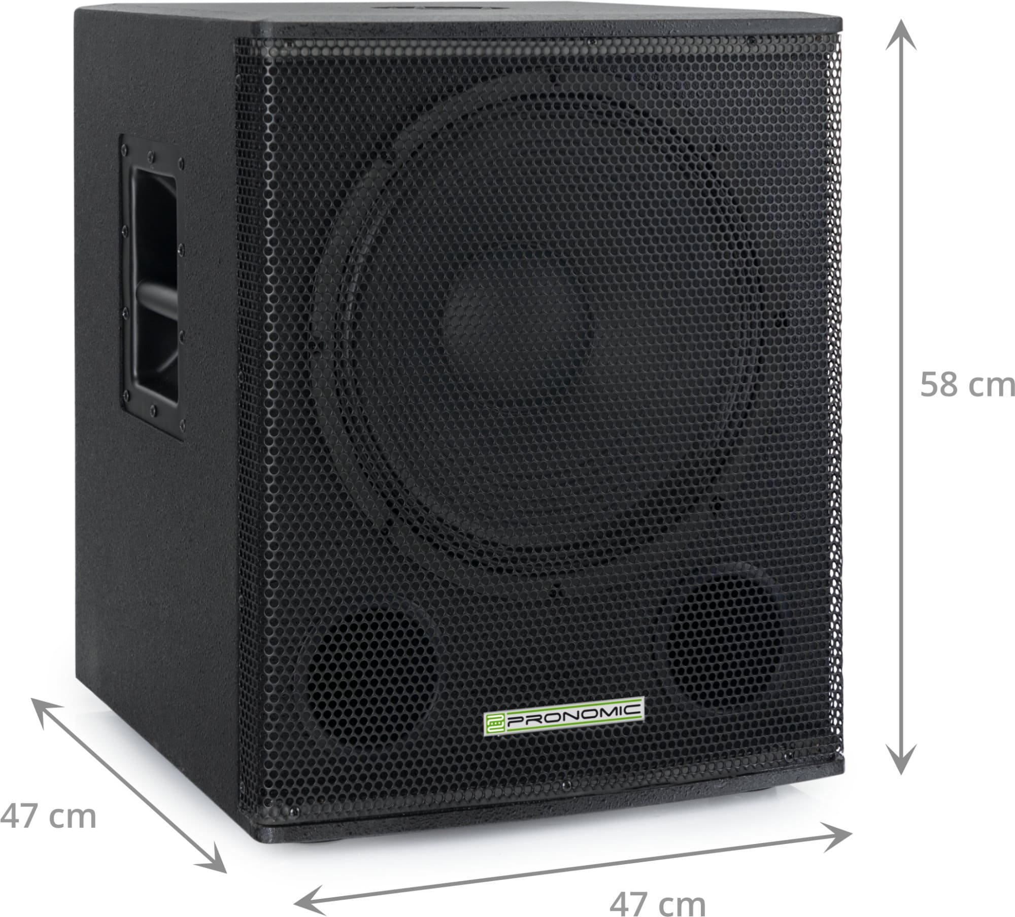 Der SA-15 SUB verfügt über einen 15″-Speaker mit zwei Bassreflexöffnungen. Angetrieben wird die Membran von einer 2″-Magnetspule, welche in Kombination mit der 300 Watt (RMS) Endstufe eine Maximallautstärke von 124 dB liefert.