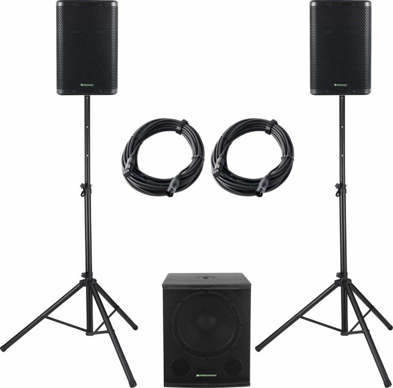 Das Live-Set von Pronomic besteht aus einem Subwoofer und 2 Hochtönern, welche auch alleine als mobile Fullrange-Lautsprecher genutzt werden können. Zusammen mit den Stativen lässt sich damit richtig einheizen.