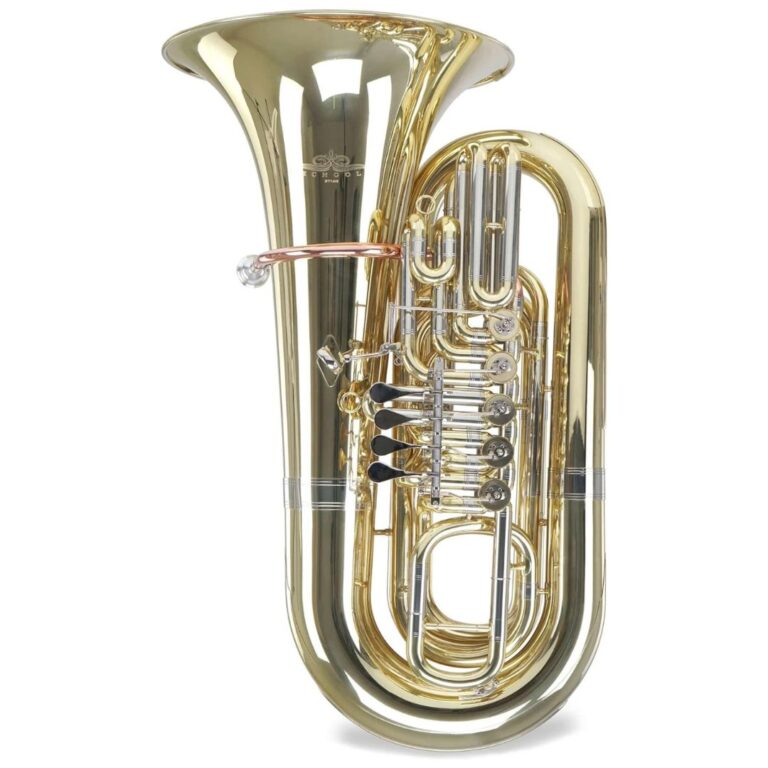 Die klarlackierte Oberfläche verleiht der Tuba nicht nur eine glänzende und edle Optik, sondern schützt sie auch vor äußeren Einflüssen. Zum Lieferumfang gehören ein passendes Mundstück und ein stabiler Koffer, der den sicheren Transport des Instruments gewährleistet.