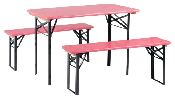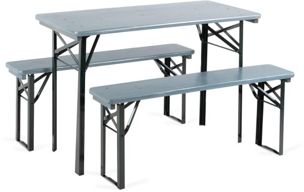 - Kurze, 3-teilige Bierzeltgarnitur (2x Bank, 1x Tisch)