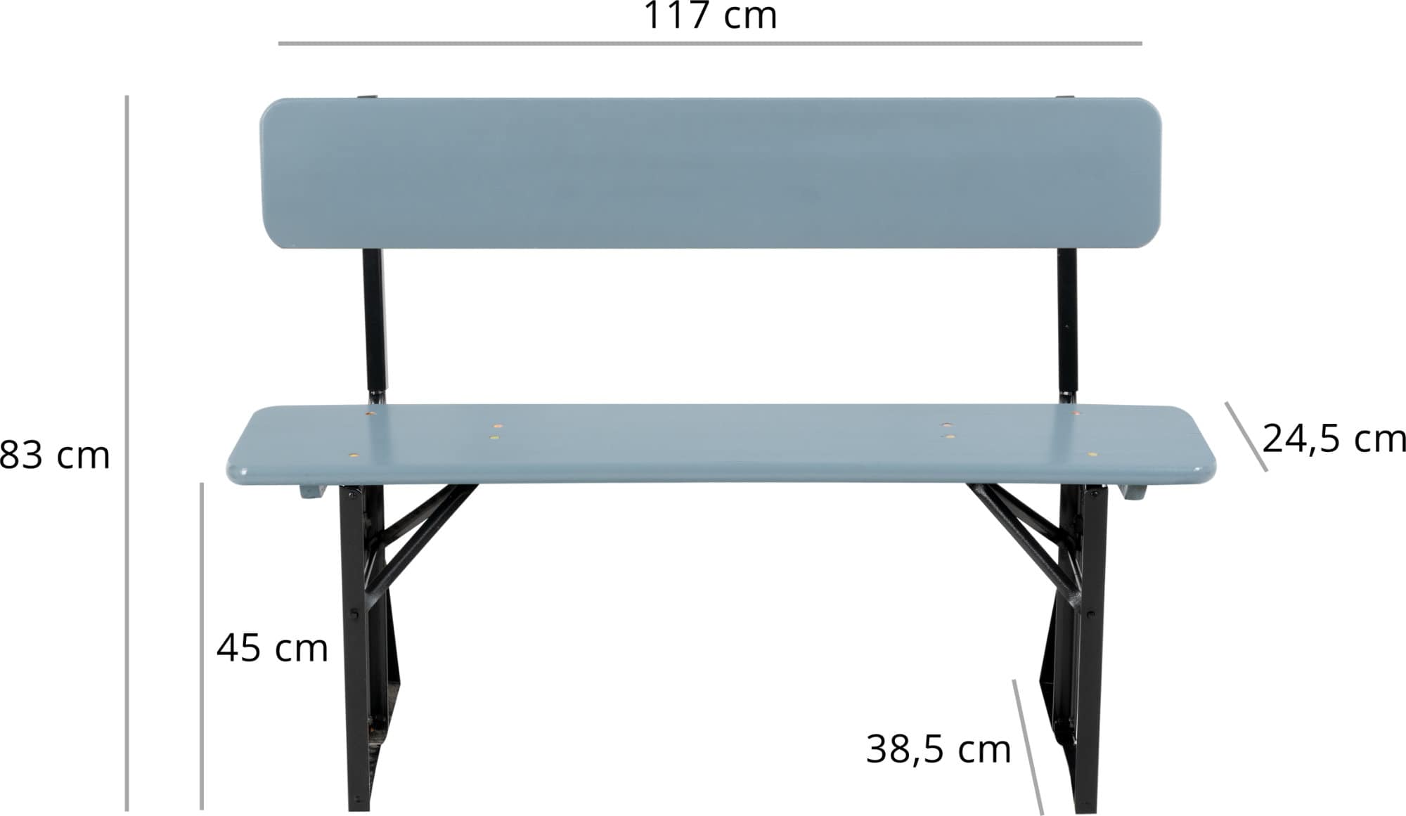 Durch Scharniere auf der Unterseite und stabile, klappbare Stahlgestelle wird der Auf- und Abbau zu einem echten Kinderspiel. Bei Nichtgebrauch oder zum Transport lässt sich die Sitzbank auch leicht und platzsparend wieder verstauen.
