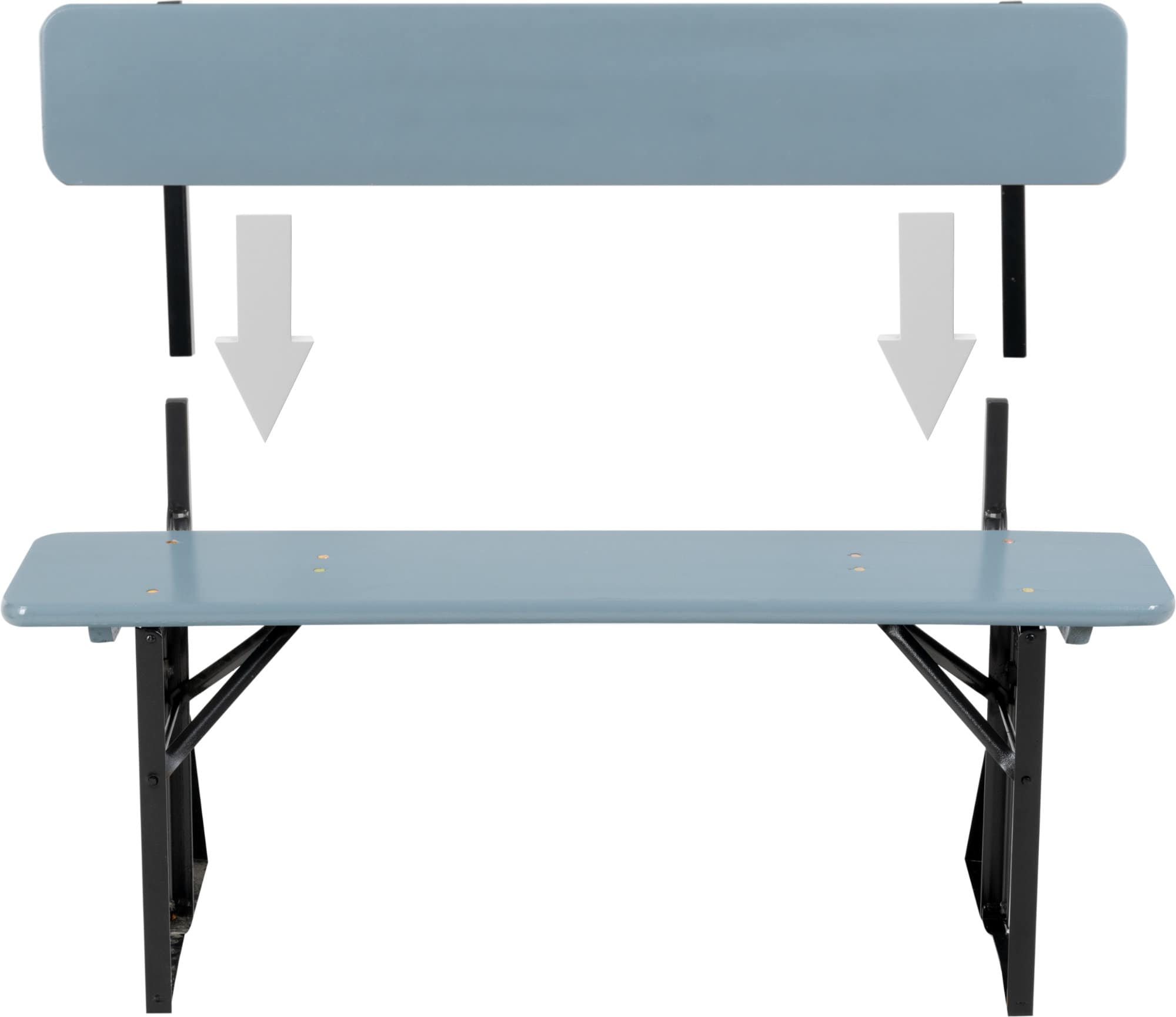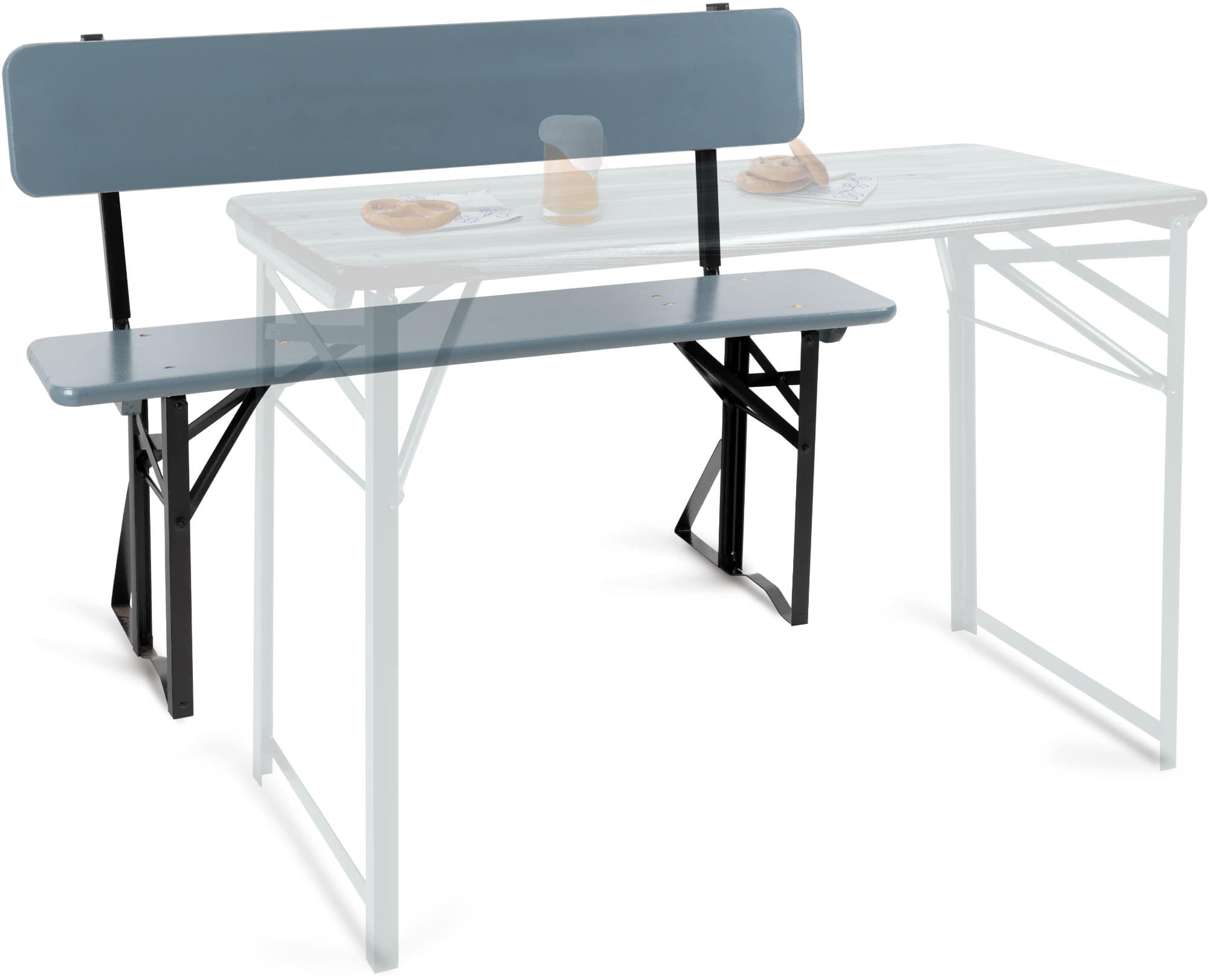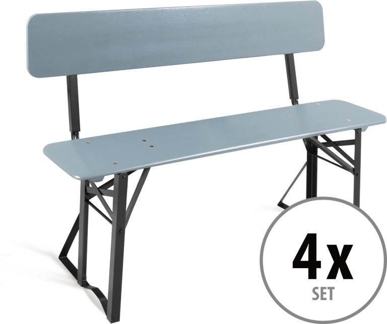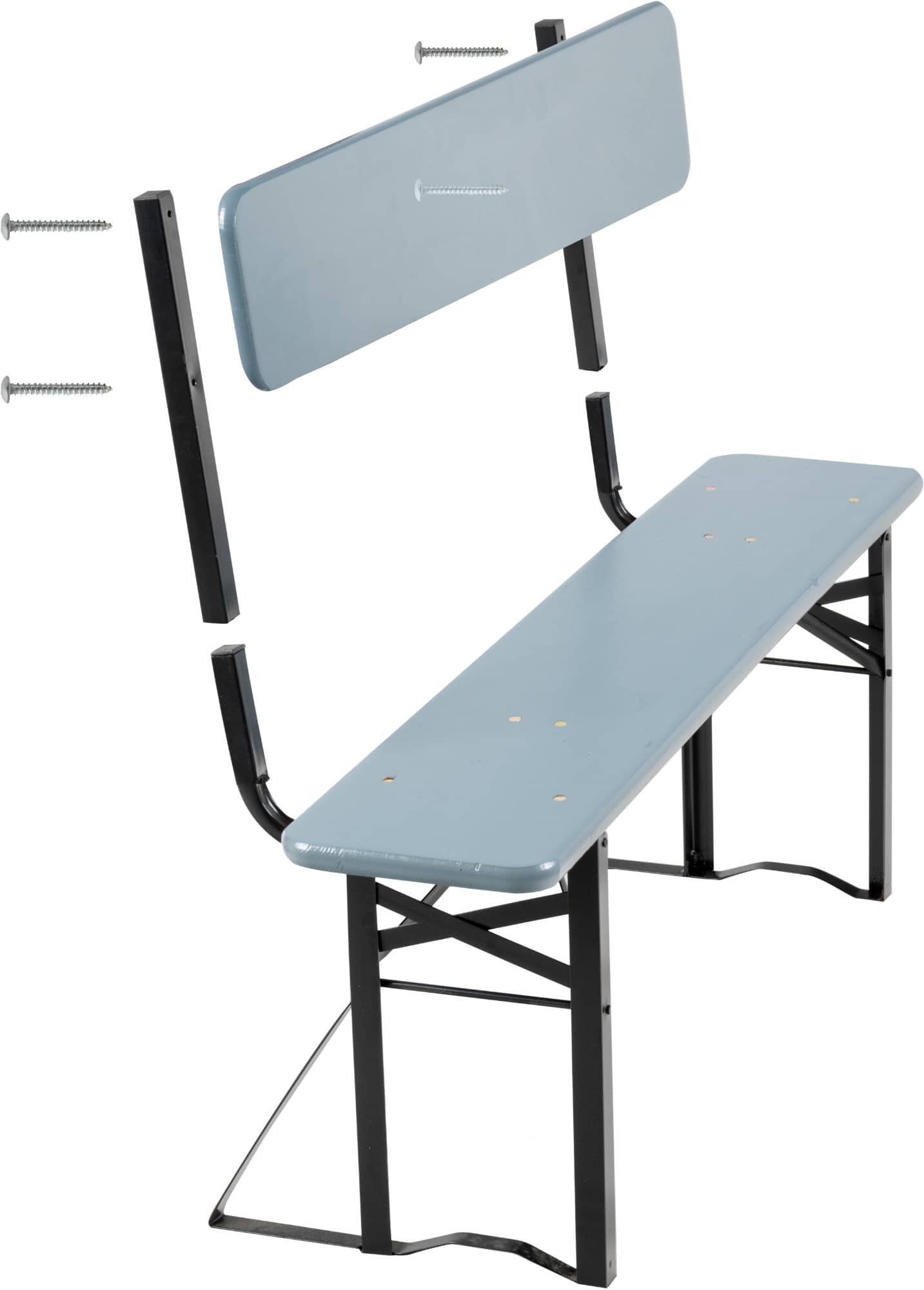 Die Version mit Rückenlehne bietet im Vergleich zum Standardmodell einen noch höheren Sitzkomfort. Zudem sind die Bänke durch den extra montierten Klappmechanismus einfach aufzubauen. Lediglich vor dem ersten Aufbau müssen noch die Rückenlehnen mit den Metallteilen verschraubt werden, was mit einem gängigen Kreuzschraubendreher schnell erledigt ist.