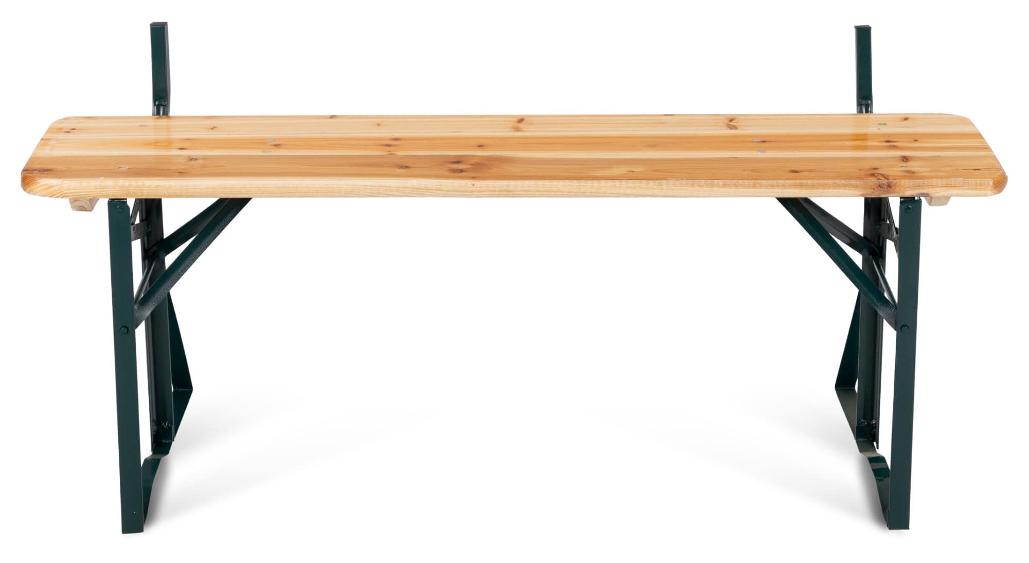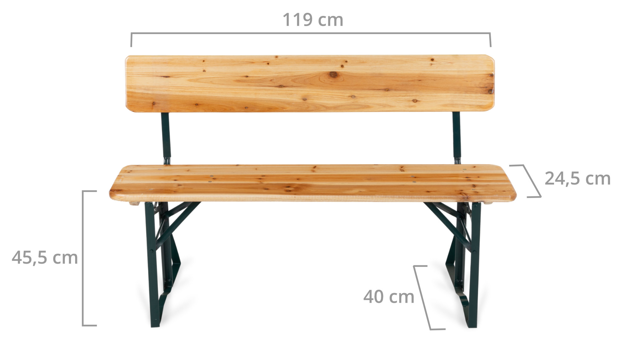 Diese gegenüber einer Standard-Bierbank verkürzte Variante besitzt eine Länge von 119 cm. Dadurch bietet sich die Möglichkeit, auch in beengten Gartenlauben oder auf Balkonen echtes Biergarten-Flair zu erzeugen. Die Maße von 119 x 40 x 45,5 cm cm machen bequemes Sitzen auch über mehrere Stunden möglich.