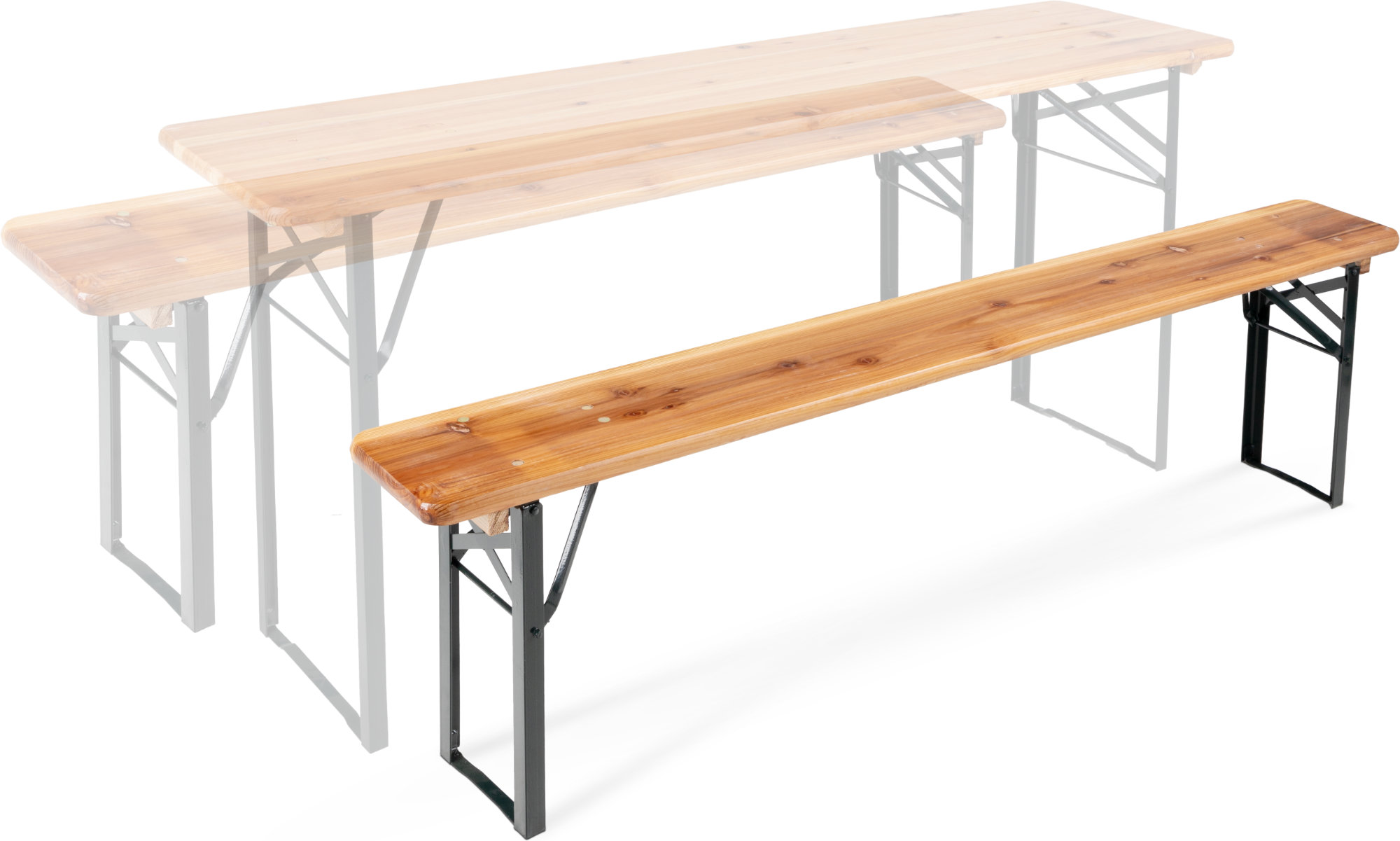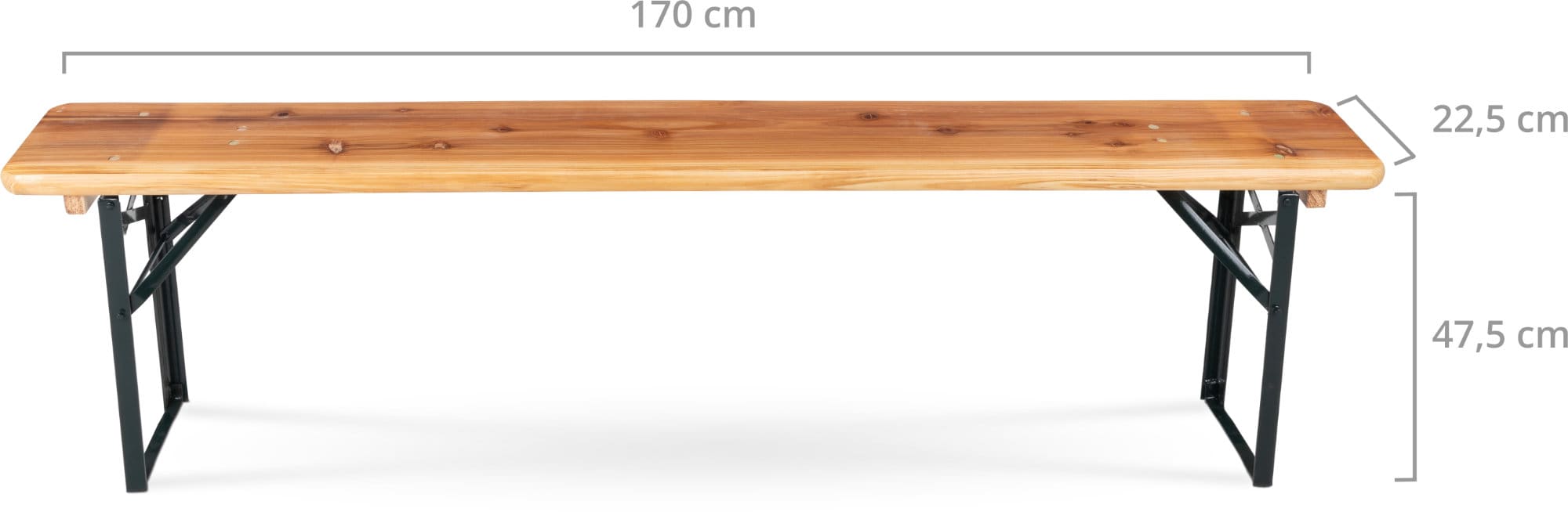 Diese gegenüber einer Standard-Bierbank leicht verkürzte Variante besitzt eine Länge von 170 cm. Die Maße von 170 x 22,5 x 47,5 cm machen bequemes Sitzen auch über mehrere Stunden möglich.