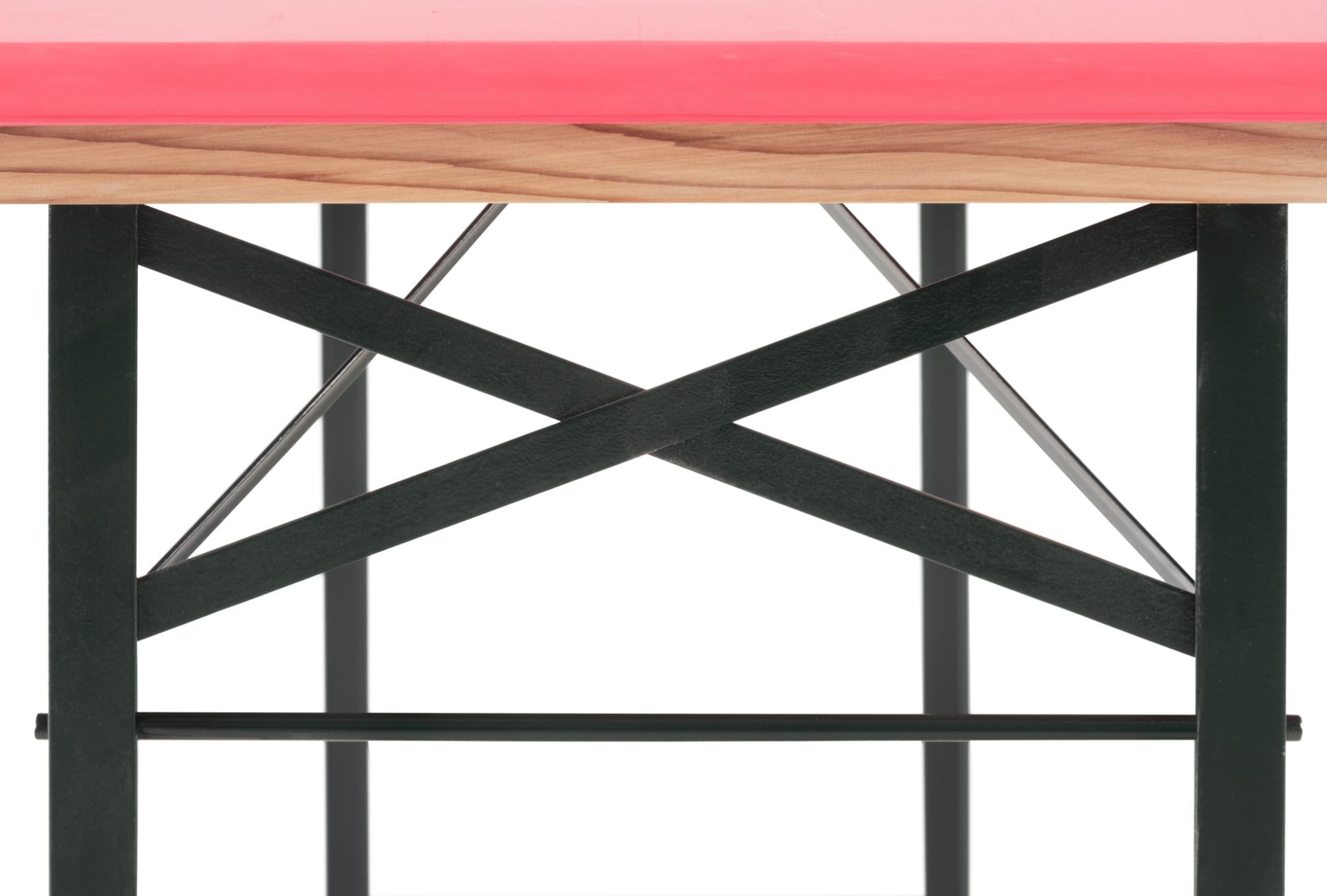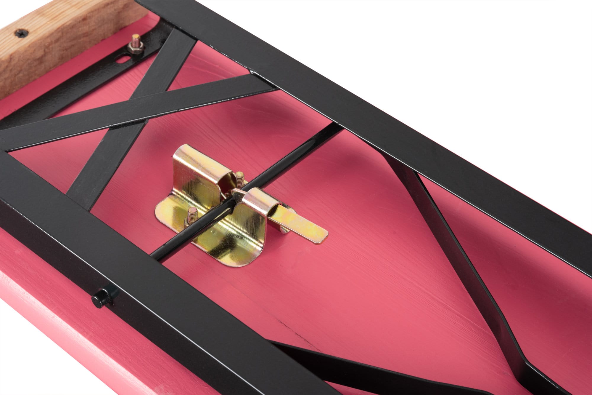Durch Scharniere auf der Unterseite und stabile, klappbare Stahlgestelle wird der Auf- und Abbau zu einem echten Kinderspiel. Bei Nichtgebrauch oder zum Transport lassen sich die Sitzbank und der Tisch auch leicht und platzsparend wieder verstauen.