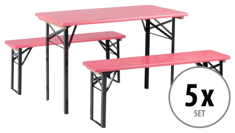 Die Hirschgarten Festzeltgarnitur hält durch ihre lackierte Oberfläche Wind und Wetter stand und kann somit auch mal auf der Terrasse bleiben, falls es einmal regnet und stürmt. Für die dauerhafte Lagerung im Freien empfiehlt sich allerdings eine Abdeckung.