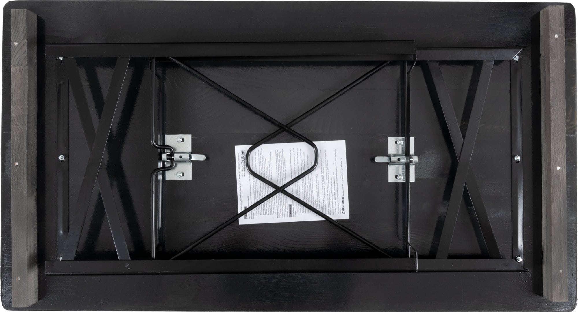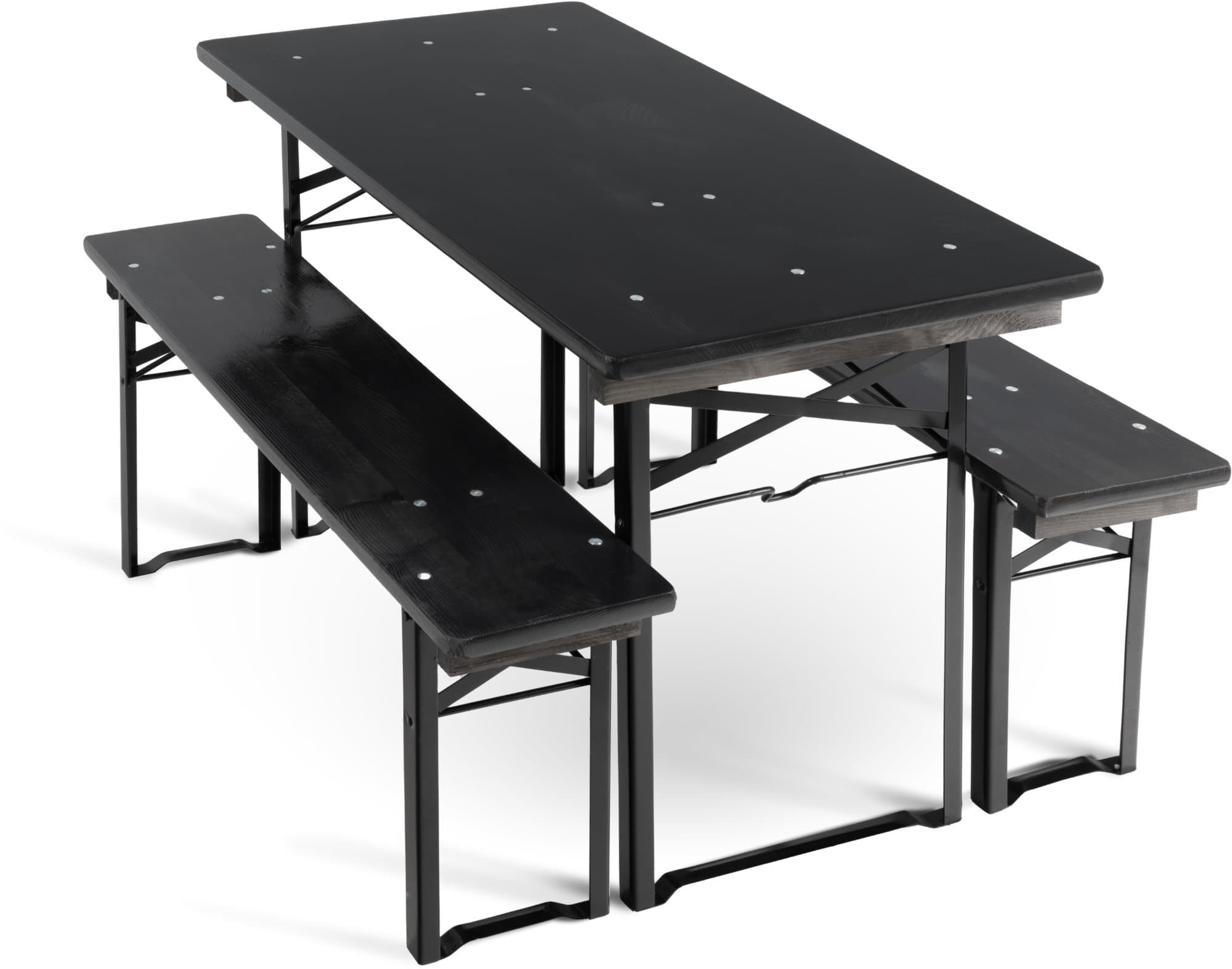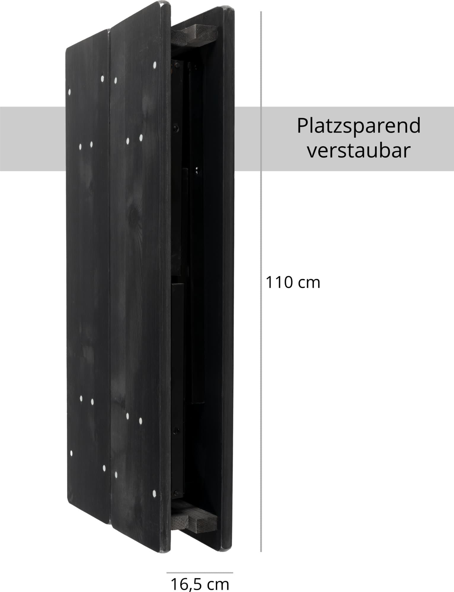 Durch Scharniere auf der Unterseite und stabile, klappbare Stahlgestelle wird der Auf- und Abbau zu einem echten Kinderspiel. Bei Nichtgebrauch oder zum Transport lassen sich die Sitzbank und der Tisch auch leicht und platzsparend wieder verstauen.