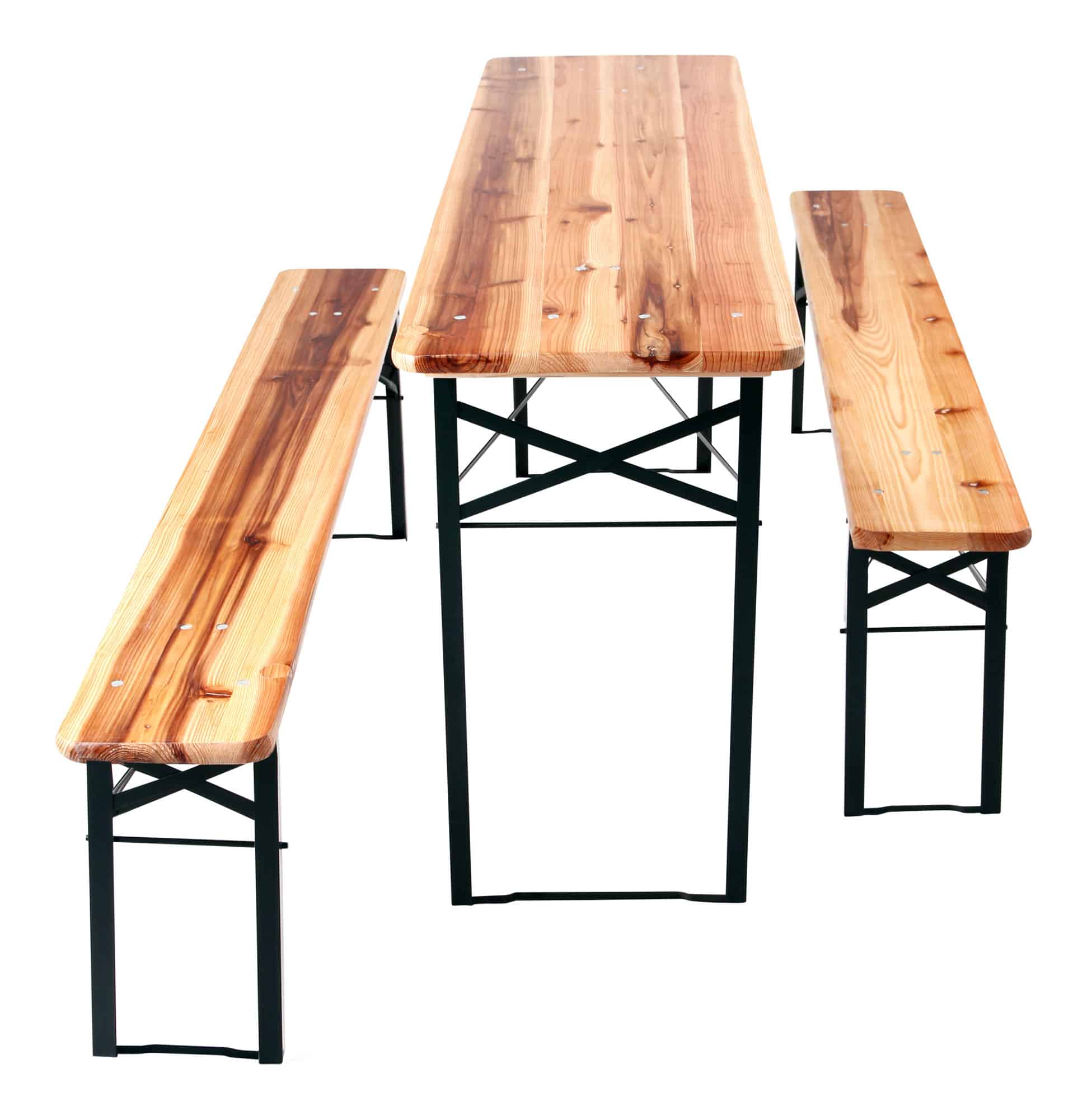 Wer träumt nicht davon, im Sommer gemütlich im Biergarten bei einem gekühlten Getränk zu sitzen und sich einfach so rundum wohlzufühlen? Die Stagecaptain Hirschgarten Bierzeltgarnitur macht echtes Biergartenfeeling jetzt auch für die heimische Terrasse oder den Balkon möglich! Die stabilen Holzbänke sorgen für bequemen Sitzkomfort in Innen- und Außenbereich und lassen sich dabei kinderleicht aufstellen.
