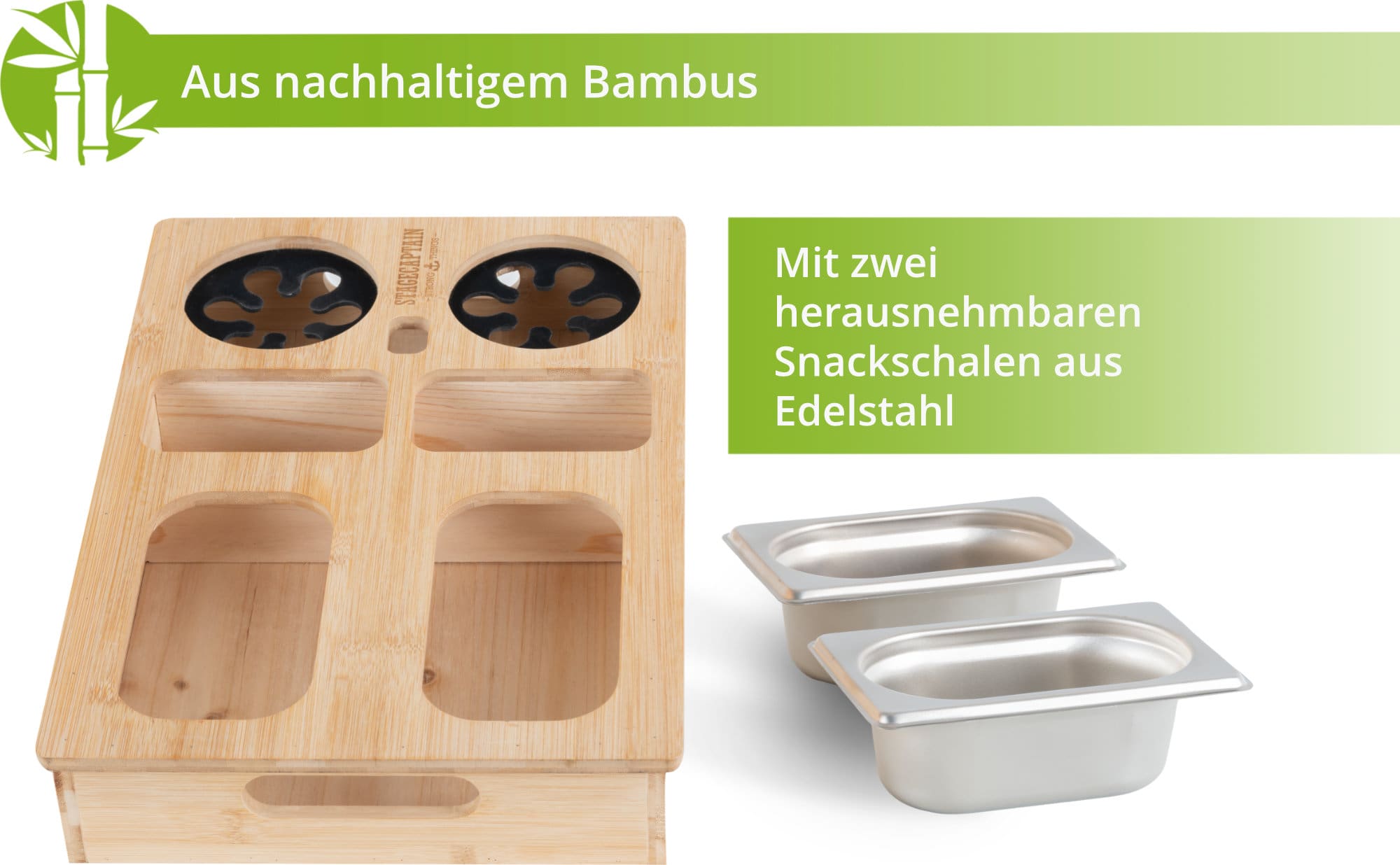 Diese Snackbar macht das Genießen Deiner Lieblingssnacks noch angenehmer und unkomplizierter. Dank der herausnehmbaren Edelstahlschalen wird die Reinigung zum Kinderspiel. Egal, ob du Chips, Nüsse oder andere Leckereien servierst, nach dem Gebrauch kannst Du die Schalen einfach entnehmen und unter fließendem Wasser abspülen oder sogar in die Spülmaschine geben. Keine lästigen Rückstände mehr, kein aufwendiges Schrubben – einfach reinigen und wieder verwenden!