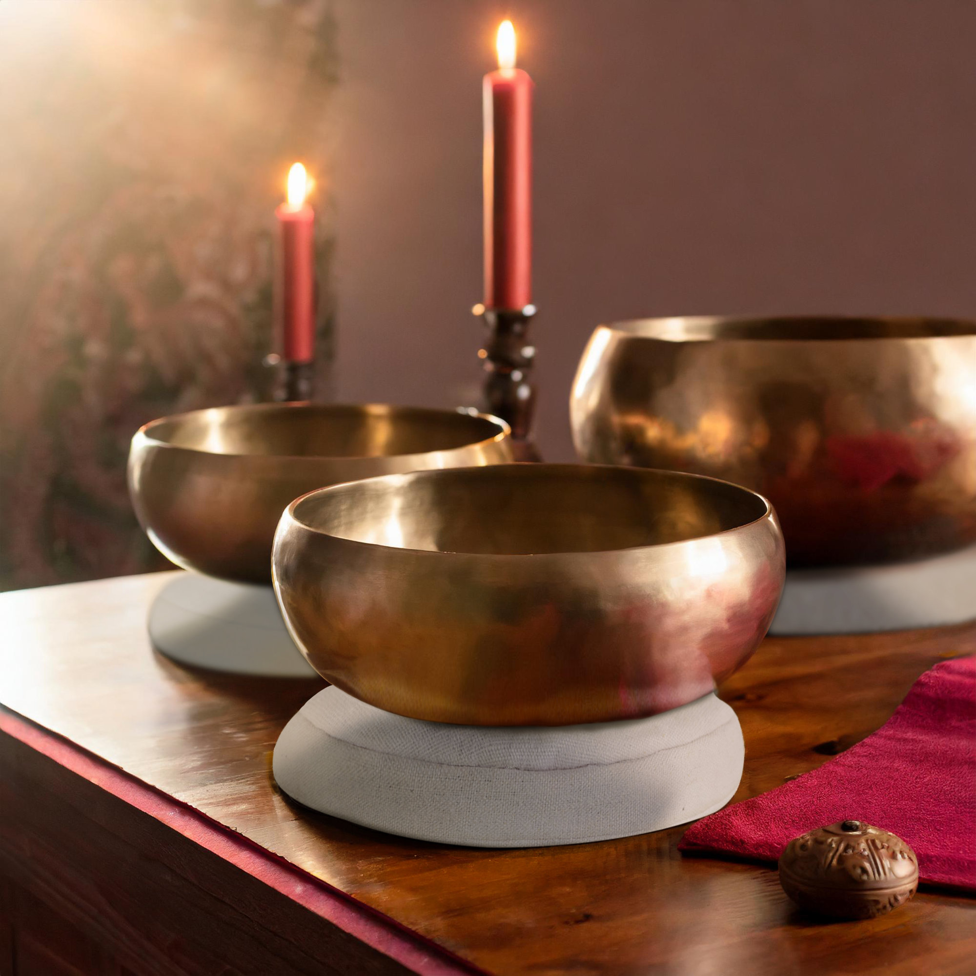 Bestimmte Körperregionen bieten kaum ausreichend Halt für eine Klangschale. Mit dem Kissen kann die Position der Singing Bowl auf dem Körper stabilisiert werden.
