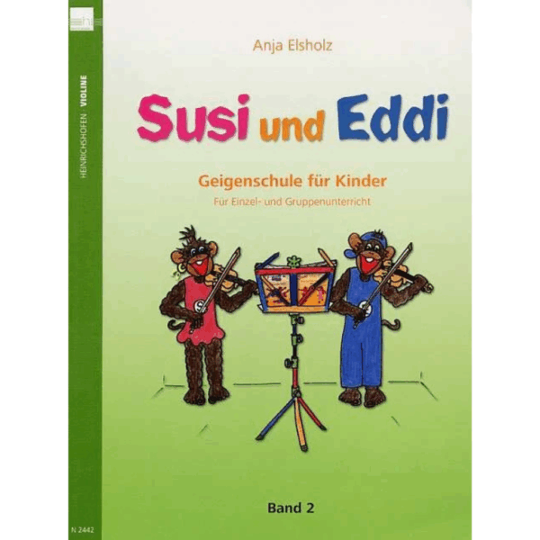 Susi und Eddi 2 – Aufbau-Geigenschule für Kinder mit neuen Griffarten, Doppelgriffen & Liedern. Ideal für Einzel- & Gruppenunterricht in Südtirol.