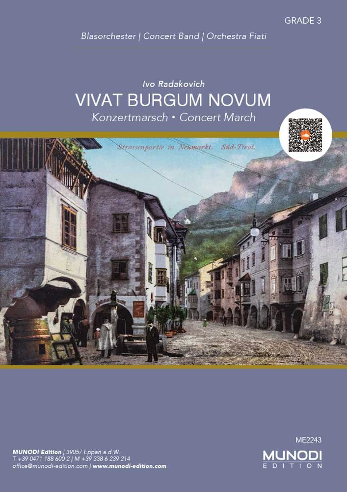 Im sonnigen Süden Südtirols, nahe der deutschen Sprachgrenze, liegt am Fuße des Hügels Castelfeder der Marktflecken Neumarkt. Aus dem Namen der 1189 gegründeten Gemeinde „Burgum novum Egne“ bildete sich im 14. Jahrhundert der Ortsname „Newenmarcht“ und in der Folge der gegenwärtige Name Neumarkt. Die Ortschaft war bereits im Mittelalter wegen seiner geographisch günstigen Lage ein florierendes Handelszentrum mit dem bedeutendsten Flusshafen der Region (bis zum 16. Jahrhundert) und ist heute der kulturelle und wirtschaftliche Mittelpunkt im Südtiroler Unterland. Das malerische Dorf Neumarkt mit seinem alten Ortskern, den langen Lauben, herrschaftlichen Ansitzen und prächtigen Innenhöfen zählt nicht umsonst zu den schönsten Orten Italiens. Mit dem Konzertmarsch „VIVAT BURGUM NOVUM“ drückt Radakovich seiner Heimatgemeinde gegenüber seine Wertschätzung aus und widmet diesen gleichzeitig der Musikkapelle Neumarkt zur 200-Jahrfeier.