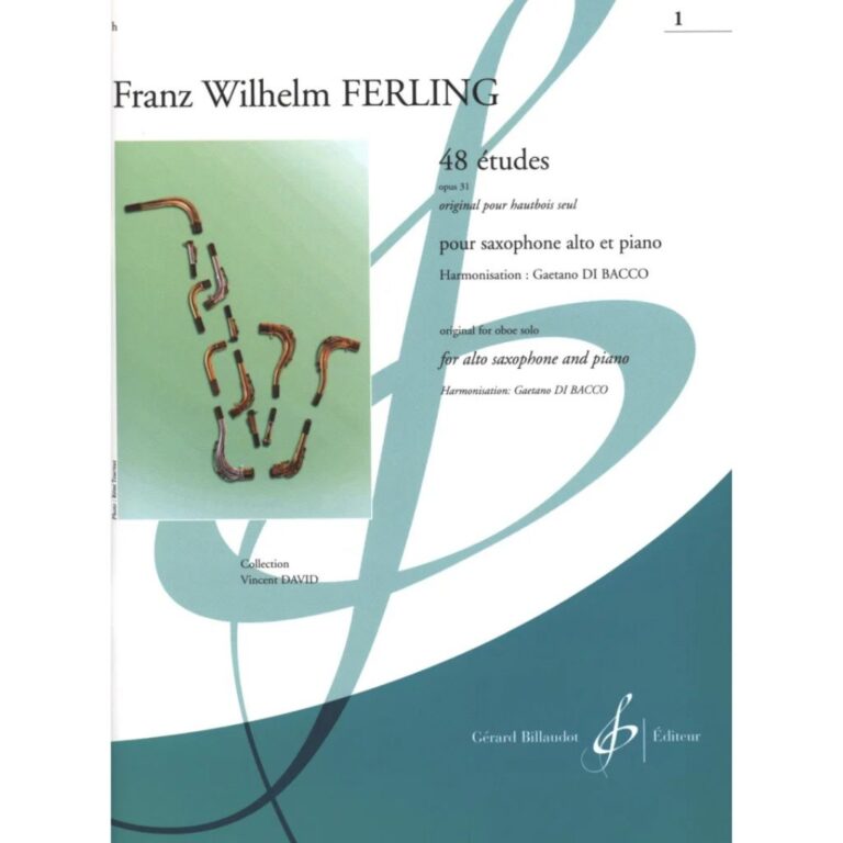 Franz Wilhelm Ferlings 48 Études op. 31 zählen zu den bedeutendsten Etüdensammlungen des 19. Jahrhunderts. Ursprünglich für Oboe komponiert, wurden sie von Gaetano di Bacco für Altsaxophon und Klavier eingerichtet und erscheinen in dieser Ausgabe als Teil der Collection Vincent David im Verlag Billaudot.