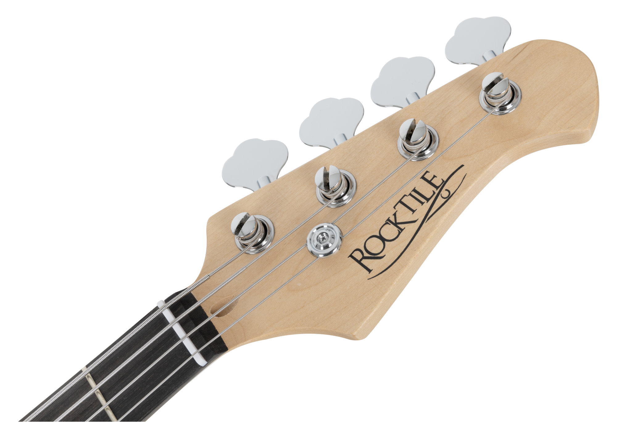 Der Rocktile E-Bass aus der Pro-Serie im klassischen Jazz Bass-Outfit und schönem 70th Deluxe Finish mit perlmuttrotem Pickguard sieht nicht nur cool aus, sondern hat auch in Sachen Soundvielfalt einiges zu bieten.
