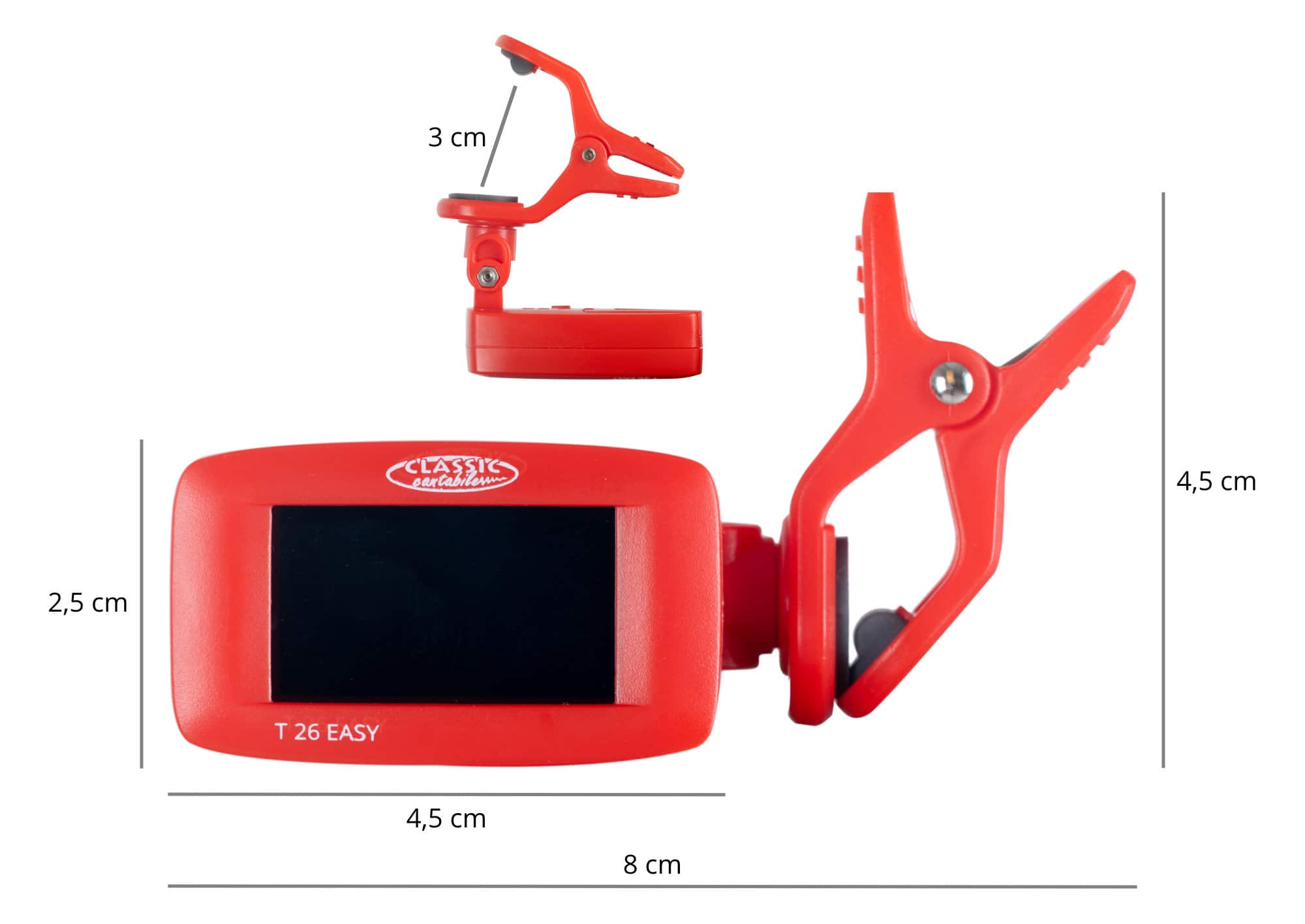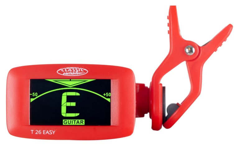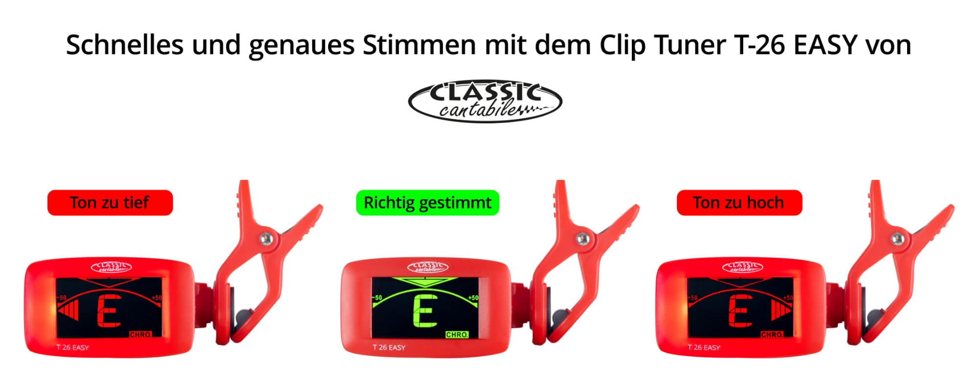 Der Classic Cantabile T-26 ist ein kompakter Clip-Tuner, welcher sich zum Stimmen vieler Instrumentengruppen eignet. Neben dem chromatischen Modus kann der T-26 auf Gitarre oder Bass eingestellt werden.