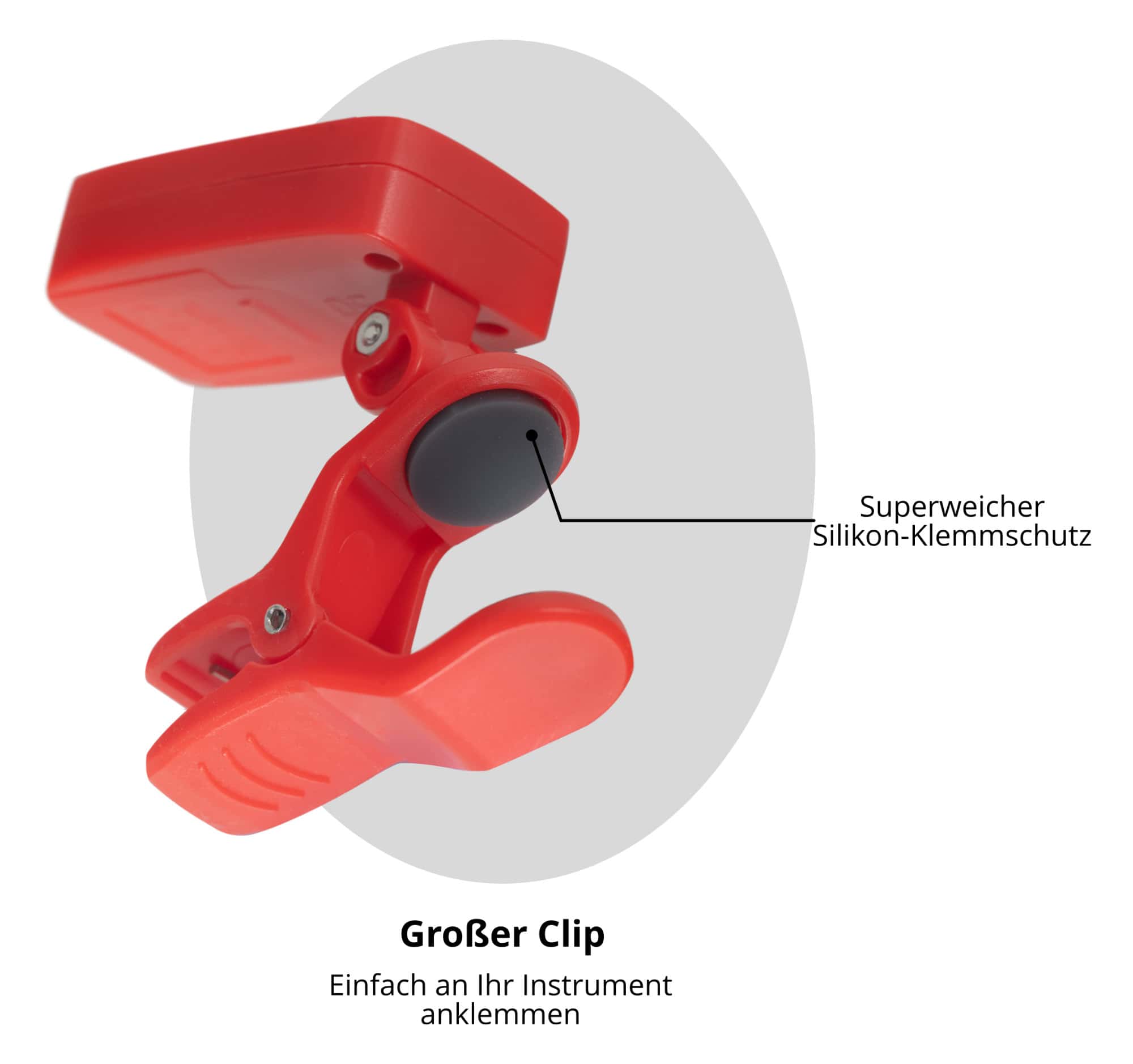 Durch die kompakte Größe von nur 5 cm x 2,5 cm x 4 cm (inkl. Clip) passt der Tuner in jede Hosentasche oder auch das Zubehörfach eines Gigbags und ist somit immer dabei!