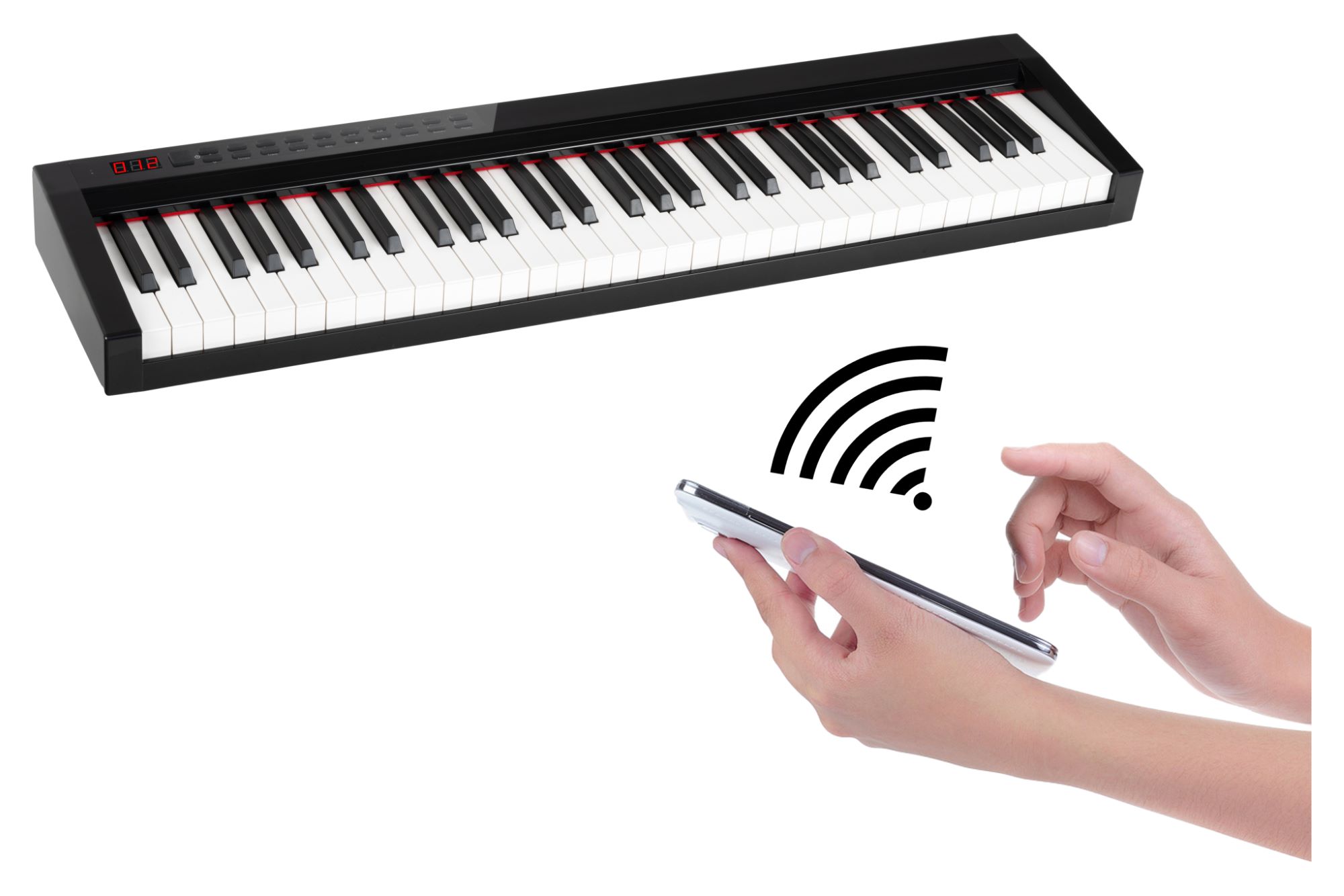 Mit dem eingebauten Bluetooth-Modul unterstützt das FunKey die Anforderungen von heute. Über Bluetooth-MIDI können MIDI-Daten kabellos an ein Tablet oder einen Laptop gesendet werden, um z.B. in einer DAW verarbeitet zu werden (über den USB-Port können übrigens ebenfalls MIDI-Daten gesendet werden). Darüber hinaus empfängt das Modul Audiodateien via Bluetooth, wodurch Du zu Deinen Lieblingssongs spielen kannst.