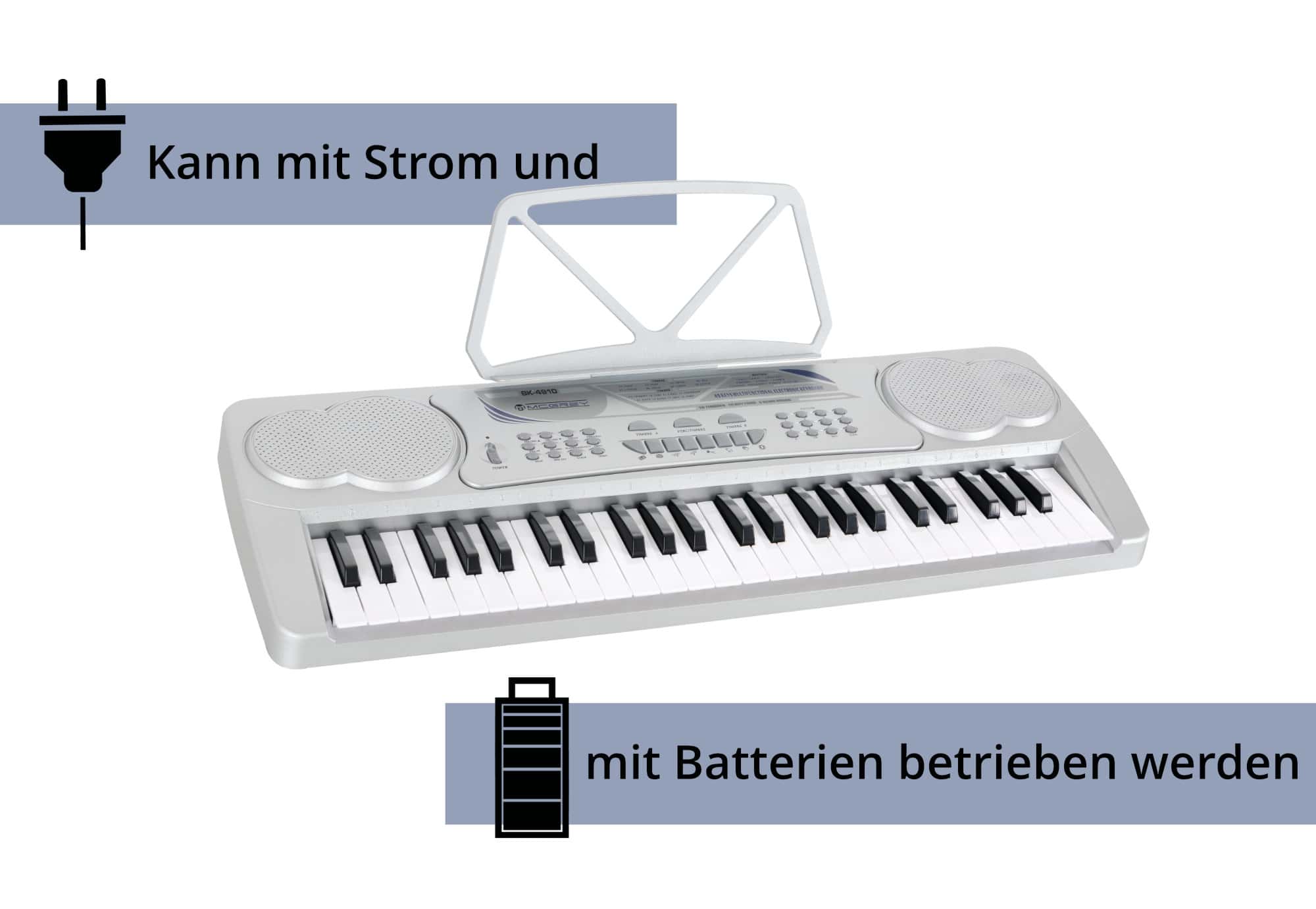 McGrey BK-4910SR Keyboard mit 49 Tasten und Notenhalter Silber