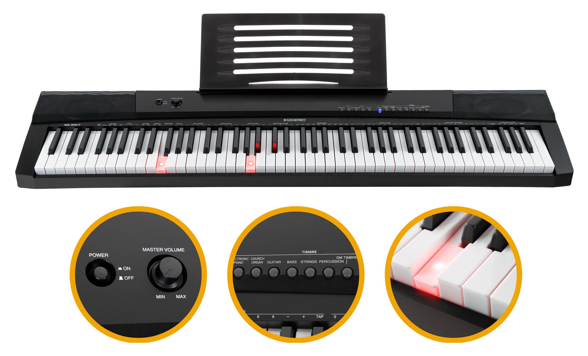 Das BS-88LT ist genau das richtige Instrument für alle, die einen großen Tonumfang und eine einfache Bedienbarkeit zum kleinen Preis suchen. Dabei glänzt das Piano mit hochwertigen Klängen, 88 leuchtenden Tasten und tollen Funktionen für den Musikunterricht.