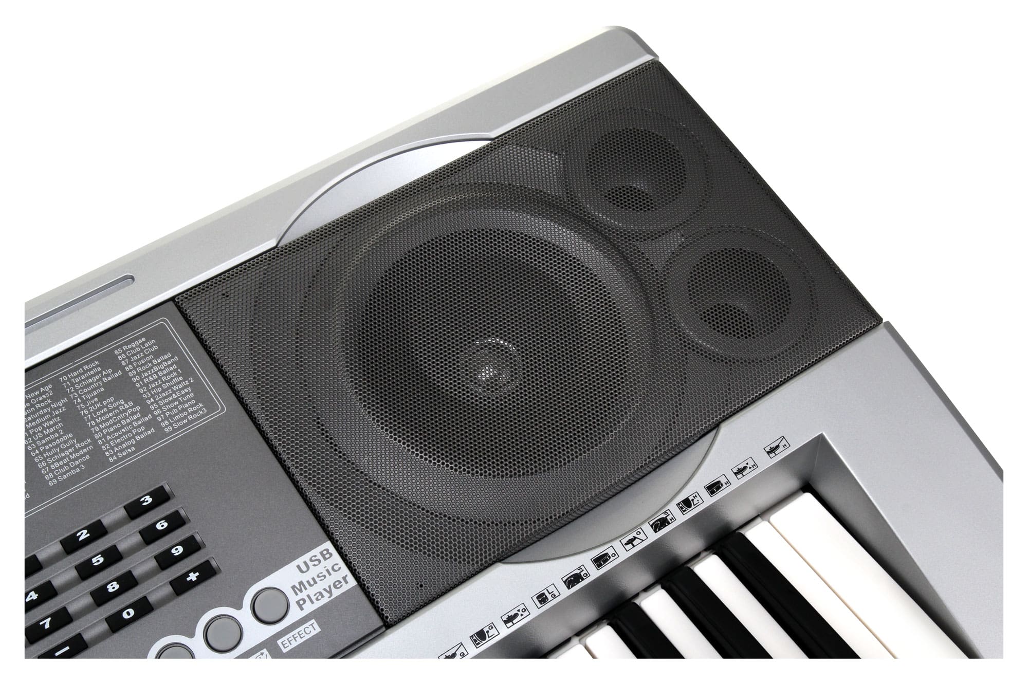 Durch die 61 Tasten erhalten auch Einsteiger ein Instrument, die von Anfang an die musikalische Herausforderung suchen. Dank des integrierten USB-Port zum Abspielen von MP3 Dateien von einem USB-Stick, lässt sich das Songportfolio jederzeit nach Belieben erweitern. Alle Funktionen und Tasten sind übersichtlich angeordnet, so findet sich jede Zielgruppe schnell und intuitiv zurecht.