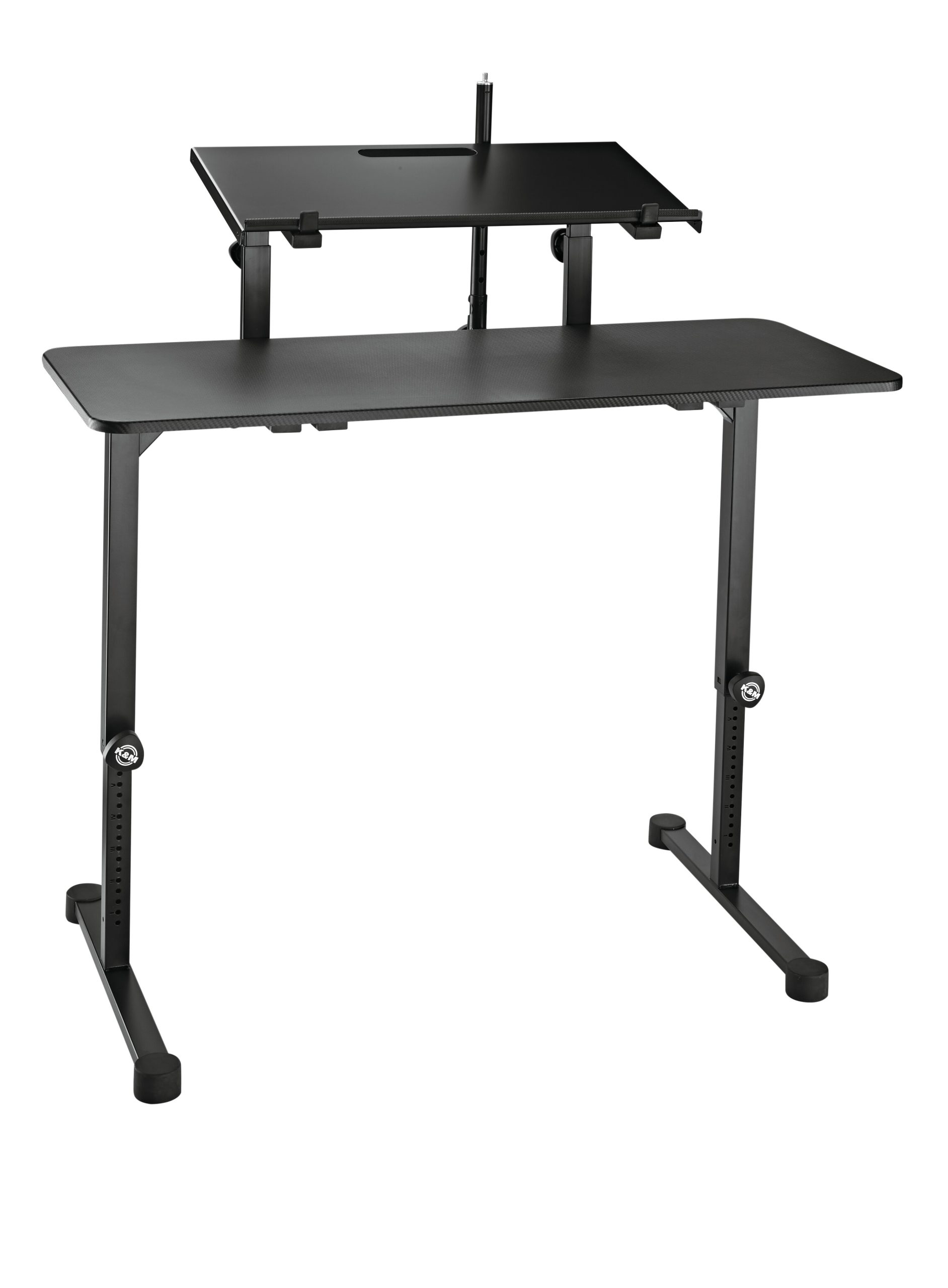Praktische Tischplatte zur Erweiterung der »Omega« Keyboard Ständer 18800, 18810 (ab Modell 2015) und 18820. Mit der Tischplatte erhalten Sie in wenigen Handgriffen eine großzügige Ablagefläche von 450 x 1.100 mm und verwandeln Ihren Keyboardständer kurzerhand in einen DJ-Tisch. Die 15,5 mm starke MDF-Platte hat eine Tragfähigkeit von 30 kg und ist an der Unterseite mit vier Schnellspannern ausgestattet. Im Lieferumfang enthalten sind Auflagerohre und Befestigungsmaterial zur Montage auf den Keyboardständern.