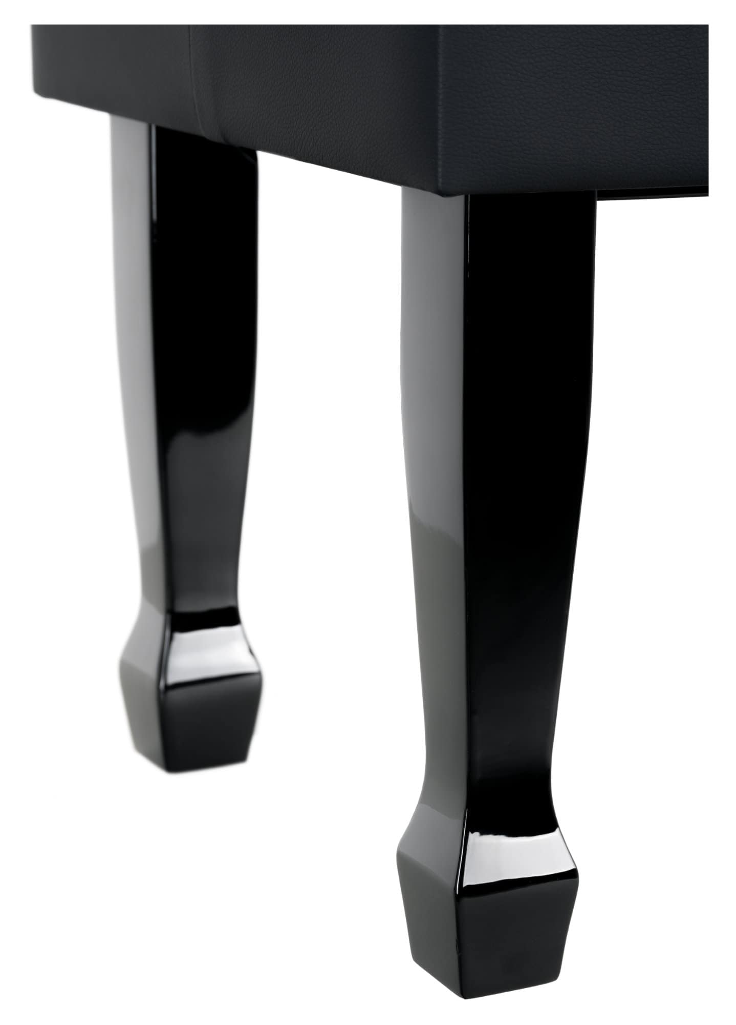 Die stabile Verbindung der Füße mit dem Rahmen und die präzise Hebemechanik heben diese schöne Pianobank deutlich von anderen Bänken dieser Preisklasse ab. Gummifüße an der Unterseite bewahren den Fußboden vor versehentlichen Kratzern.